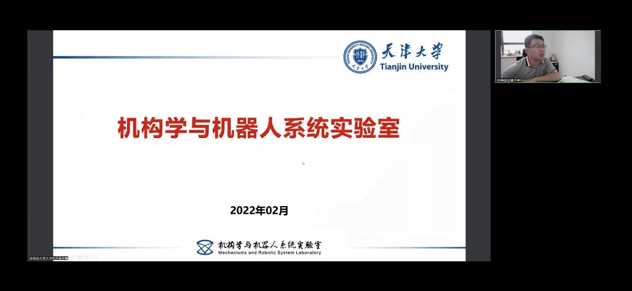 会议由开云kaiyun官网常慧宾研究员主持,开云kaiyun官网智能计算与交叉科学团队赵志学副教授、陈章玲博士和部分研究生参加了该会议。会议伊始,天津大学孙涛教授首先对机构学与机器人系统实验室团队成员进行介绍,围绕机器人结构学研究方向进行简要汇报并着重介绍“智能加工与装配机器人”和“骨科手术与康复机器人”这两方面应用。