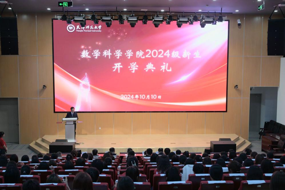 典礼在庄严的国歌中拉开序幕。常慧宾首先对全体新生的到来表示热烈欢迎,向新生介绍了学院的办学历史、师资力量和学科建设情况。他与大家分享了国际知名数学家Gunther Uhlman教授阐述的好奇心、恒心和天赋与从事数学研究的关系,要时刻保持好奇心来激发探索热情;以毅力为帆,精进教学技能;发挥自身优势,不断提升自我。同时,常慧宾寄语新生,注重个人品行与师德修养,从细微之处做起,时刻保持良好的师德风范,以身作则;培养创新精神,勇于尝试、敢于创新,不断探索新的数学理论与方法;加强自学能力的锻炼,主动探索未知,独立解决问题;拥抱人工智能技术,助力数学学习与研究。他希望每一位新生都能在数学的海洋中畅游无阻,收获辉煌。