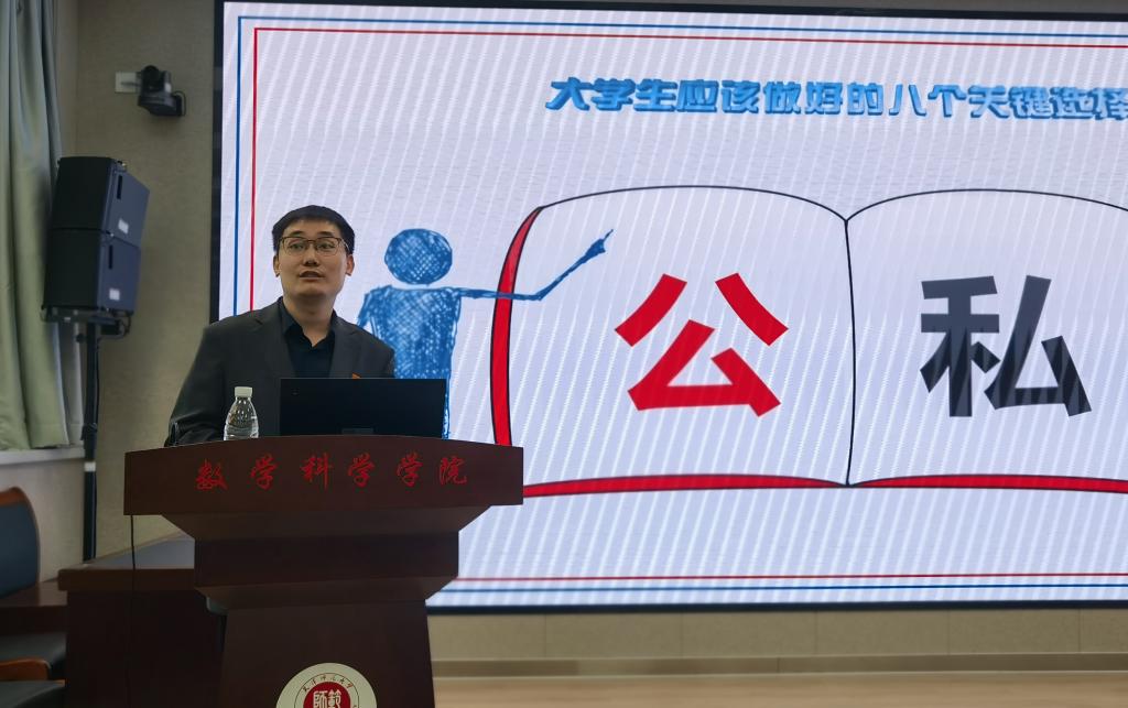 为进一步深入学习贯彻党的二十届三中全会精神,落实立德树人根本任务,开云kaiyun官网于日前在博理楼B108室举办了“雨露”思政讲堂。此次活动特邀我校马克思主义学院马超老师以“大学生应该做好的八个关键选择”为题作报告。党委副书记、纪委书记(兼)彭永刚出席活动并主持,学生党支部书记、学生党员、入党积极分子、入团积极分子代表80余人参加本次讲座。