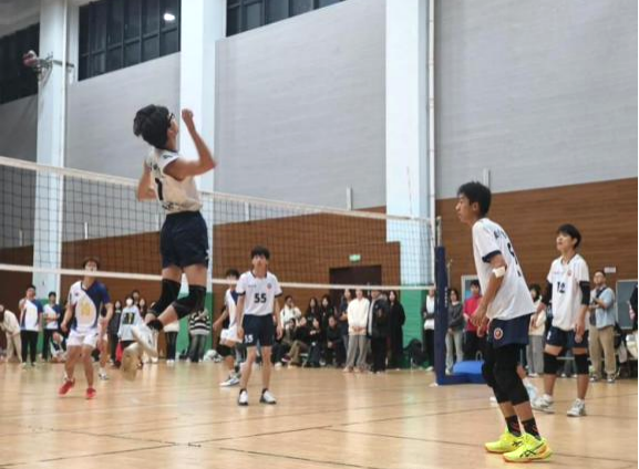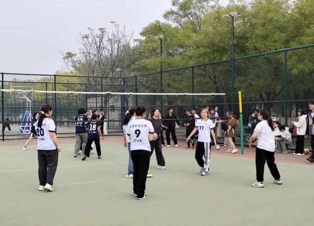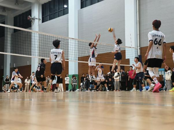 比赛当天,随着哨声的响起,球在空中划出优美的弧线,观众们热情欢呼,激情瞬间点燃。健儿们奋力拼搏,挥洒汗水,展现着青春的活力与激情。每一次发球都是力量与技巧的较量,每一次扣杀都是智慧与勇气的碰撞。队员们在场上默契配合,奋力拼搏,展现出数科学子们团结与奋斗的精神风貌。观众席上,欢呼声此起彼伏,掌声不断,同学们为每一个精彩瞬间喝彩,更被永不言败的体育精神感染。