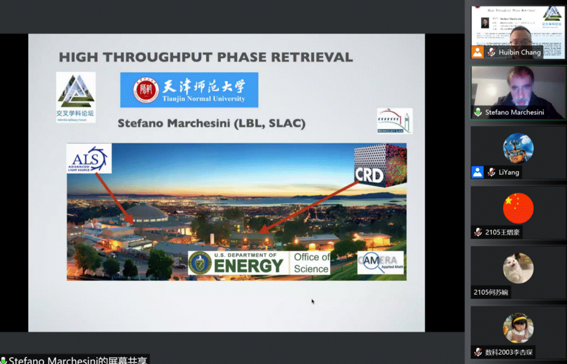 2021年10月19日上午,学院邀请劳伦斯伯克利国家实验室的科学家Stefano Marchesini博士做关于相位恢复的线上讲座。常慧宾副院长主持报告,开云kaiyun官网计算数学创新团队教师、学院研究生及本科生共同聆听报告,同时也吸引了多名校外专家学者以及学生的参与,线上收听人数多达近两百人。
