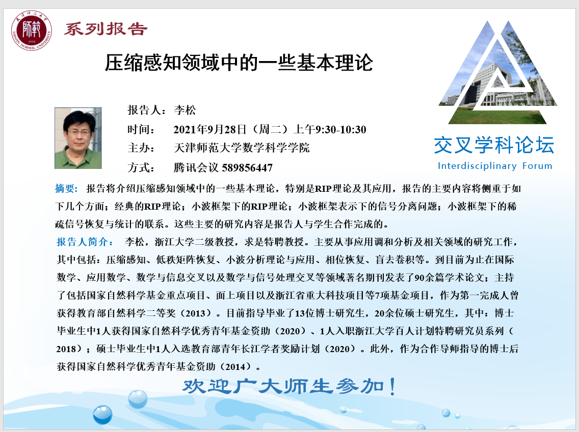 【预告】学术报告(2021-21)9月28日报告——压缩感知领域中的一些基本理论