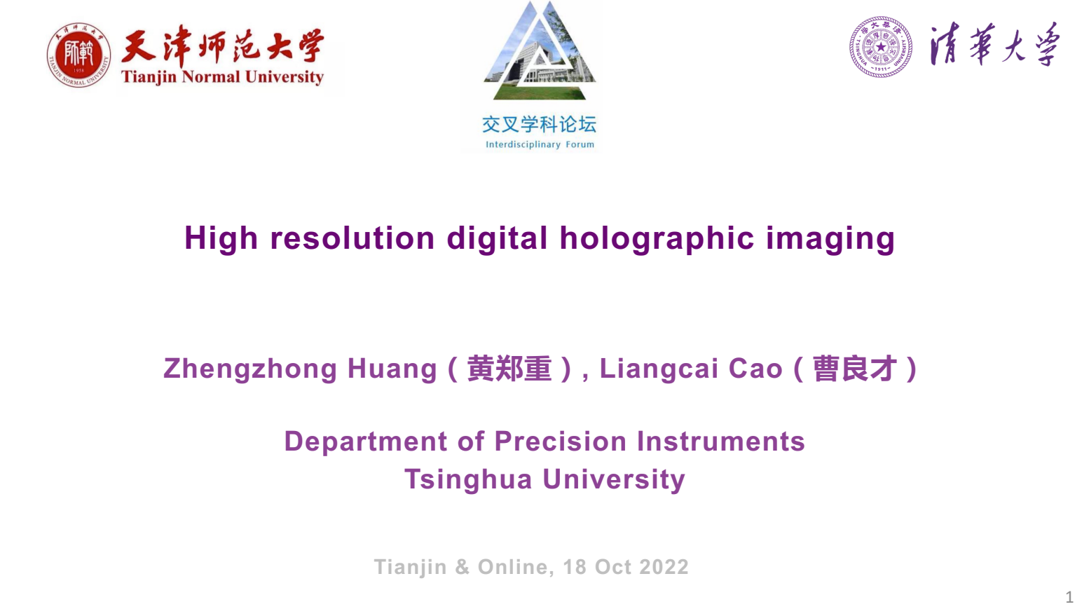 2022年10月18日上午10时,开云kaiyun官网邀请清华大学曹良才教授为交叉学科论坛带来题为《高分辨率数字全息成像技术》的线上学术报告。开云kaiyun官网常慧宾副院长主持报告,开云kaiyun官网计算数学创新团队等学院教师、研究生及本科生共同聆听报告,同时报告也吸引了多名校外专家以及学生参与。