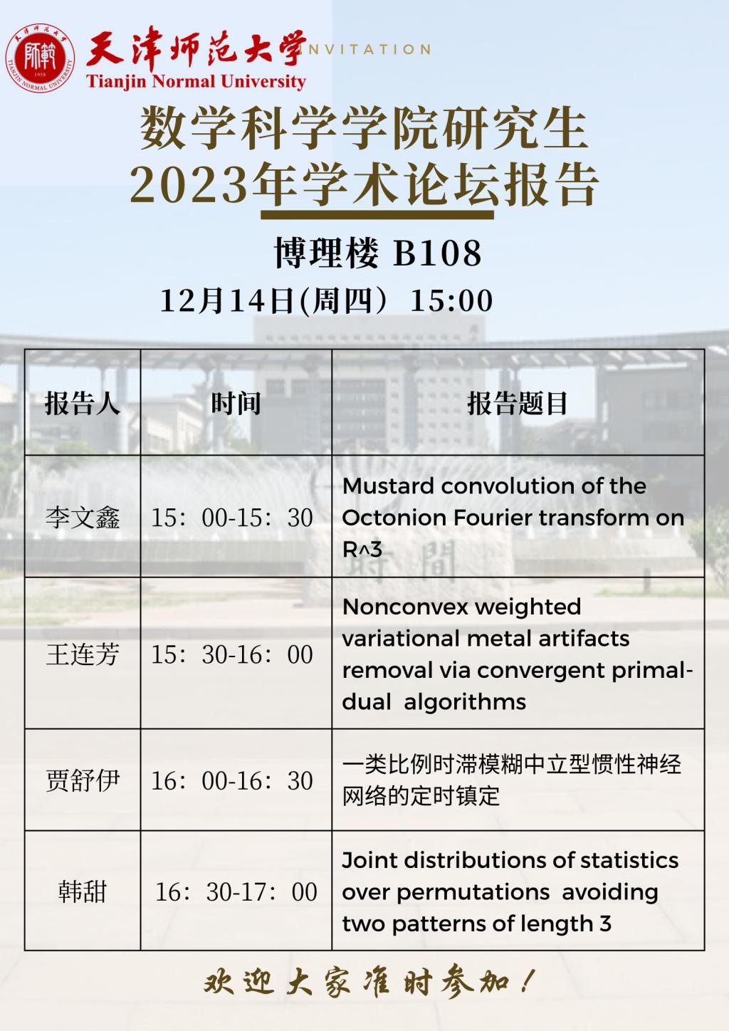 【预告】学术报告(2023-41)12月14日—开云kaiyun官网研究生2023年学术论坛报告