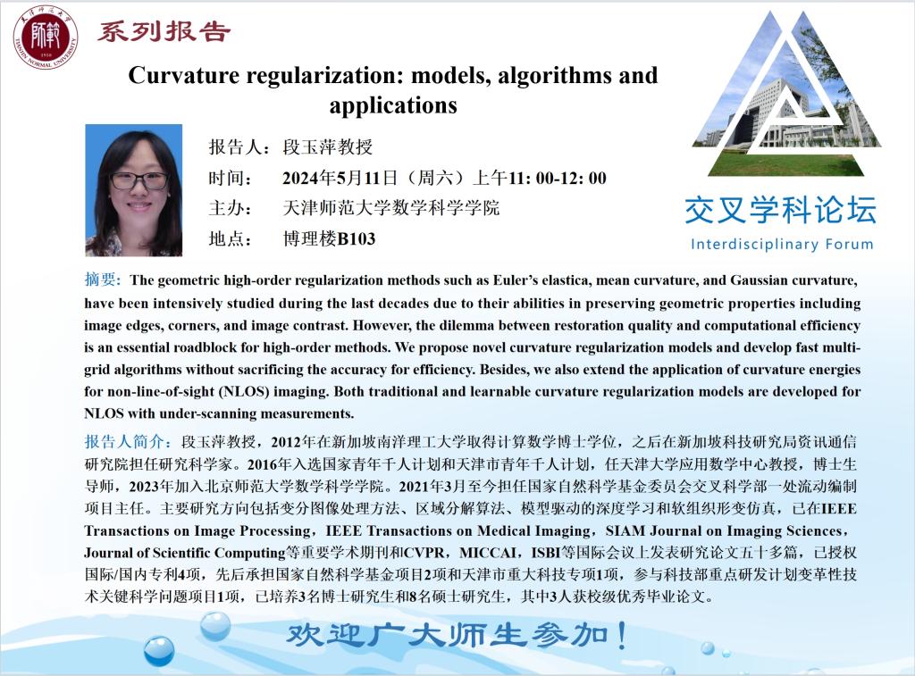 【预告】学术报告(2024-5)5月11日—Curvature regularization: models, algorithms and applications