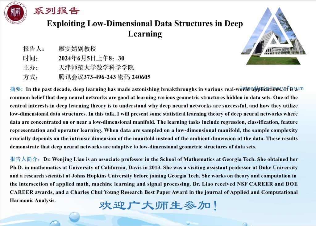 【预告】学术报告(2024-9)6月5日——Exploiting Low-Dimensional Data Structures in Deep Learning