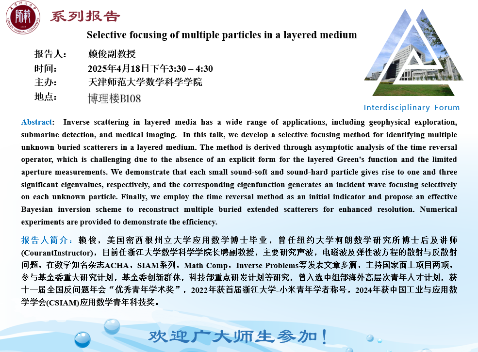【预告】学术报告(2025-10)4月18日——Selective focusing of multiple particles in a layered medium