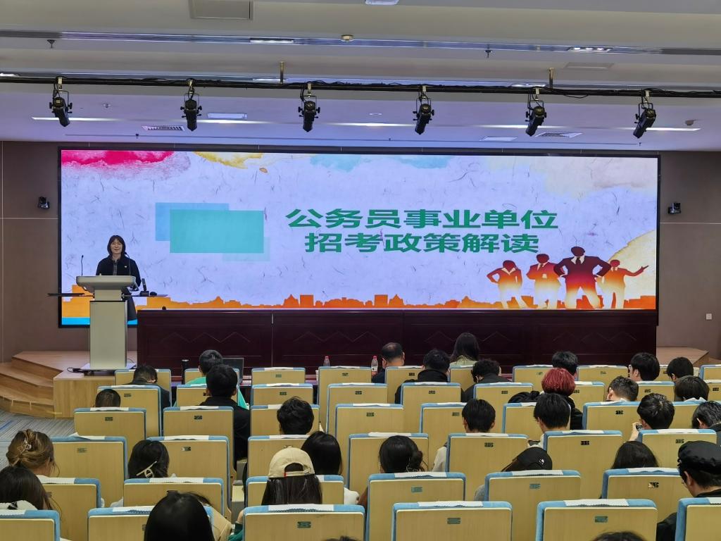 在就业政策宣讲会上,河东区人力资源和社会保障局副局长尚琳、河东区公共就业(人才)服务中心部长孙轶恺、中天人力中天人力毕业生服务部陶红辉、河东区公共就业(人才)服务中心副部长蔡玉欣分别就公务员事业单位招考和岗位选择、高校毕业生就业见习、毕业生档案、毕业生创业扶持等内容进行解读。来自开云kaiyun官网、新闻传播学院、文学院的在校生共计200余人聆听宣讲会。