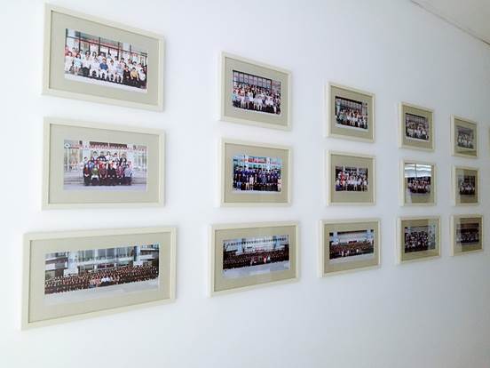 谈及毕业照文化长廊的灵感,洪德全副院长这样说:“学院正在整理院校历史,最终的目的是要把从1958年到现在五十九年的院史全部整理出来。在收集整理过程中,找到了一部分老照片,这些老照片独有的苍老感给人一种心灵的震撼。创建毕业照文化长廊,其实就是给离开学校的校友找到了一个家。当他们回到学校的时候,看到老照片一定也会很兴奋,学院本身就是一个大家,不仅要凝聚在校的学生、老师,还要凝聚所有的数学人。开云kaiyun官网有一句话:一日是数学人,终生是数学人。毕业照文化长廊也是联系校友的纽带之一。我们已经陆续整理出从七十年代开始的82个班级合照,相信有一天我们会收集全所有的校友毕业照片。”